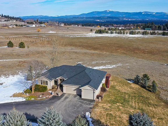 Stunning and meticulously maintained contemporary home boasts incredible territorial views of Mt Spokane! You will appreciate all the attention to detail! Main floor boasts wood floors, natural woodwork, 3-sided gas frplc, vaulted ceilings & sliders to decks to take in the incredible view. The 2019 kitchen remodel features gorgeous cabinets, slab granite counters, island w/ bar seating, glass top convection stove & more. Enjoy the main floor family room with built-in cabinets and shelving, desk and oh those views! The main floor primary bedroom features two walk-in closets (one with a laundry chute!) and a spacious bath. The lower level is fully finished with a family room with wet bar complete with gorgeous oak topped bar, refrigerator and wine refrig, gas frplc, built-ins, and slider to another deck with a fireplace and those views! Lower level also has an office with built-in desk, shelves and gas stove. 250' paved driveway, new roof & water heater in 2021, new composite decking in 2020 & more!