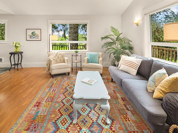 Gorgeous 1908 farmhouse in optimal Vashon Island Center location. Overlook 1.7 acres of meadows & fruit trees from your light-filled 3 bed, 1.75 bath home. Enter from the wrap-around porch where summer nights can be spent watching the stars or enjoying dinner with friends. Inside, find unique craftsman-style features slate & fir floors, French doors to deck, & natural wood detailing. This perfectly memorable & move-in-ready home is made complete w/grand windows & skylights, walk-in pantry, utility room, bonus room, & clawfoot tub. All 3 bedrooms look past the trees to the gardens. Outside enjoy rare, level, grassy garden w/option to start small-scale farm or equestrian space. On bus route & close to schools, shops & ferries.