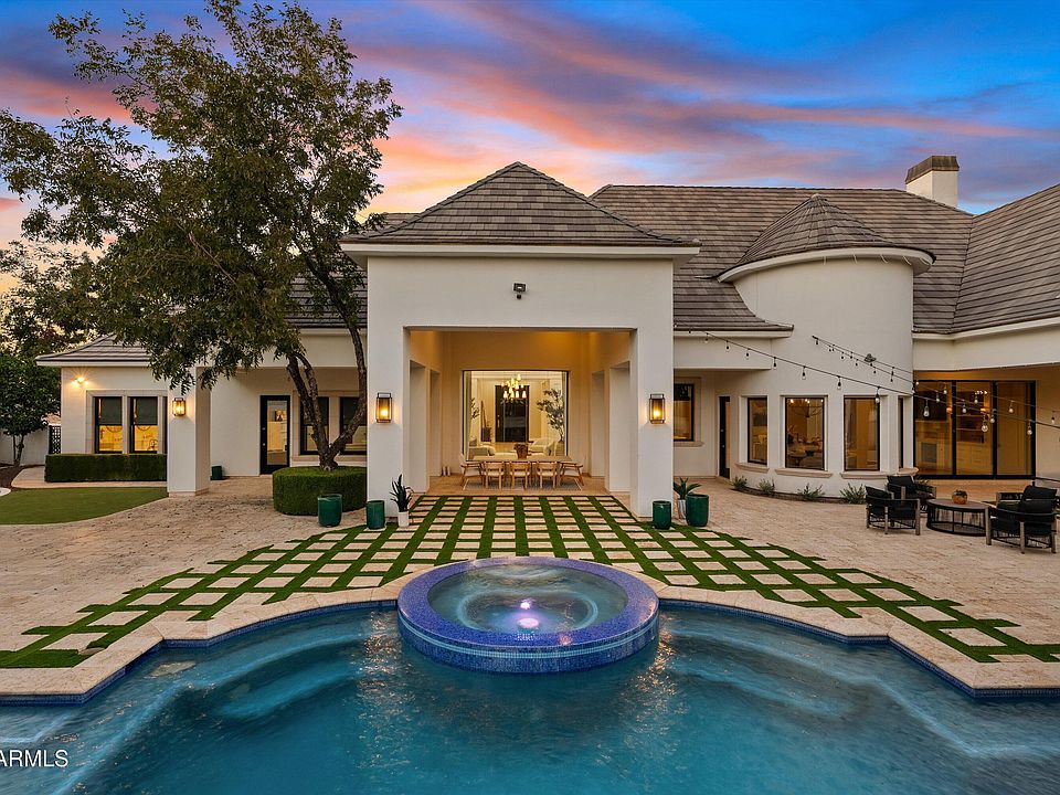 Experience modern luxury beneath the pecan trees where timeless elegance meets modern sophistication in this French chateau-inspired estate. This nearly 7,000 sq ft masterpiece showcases extraordinary craftsmanship with marble countertops, wide-plank hardwoods, designer lighting, and millwork throughout. The chef's kitchen is the heart of the home, featuring custom cabinetry, a large gathering island, and high-end appliances. With five ensuite bedrooms, a private guest suite, and a flex room for movie nights or entertaining, there's space for every lifestyle. Outside, paradise awaits with a resort-style pool, raised spa, custom slide, outdoor kitchen, and lush lawns surrounded by mature trees. Life in The Pecans awaits with proximity to the rapidly expanding shopping and dining scene!