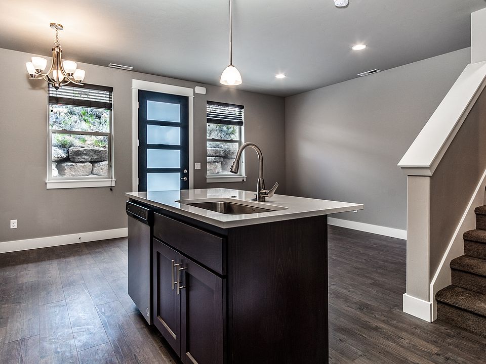 Enter this center unit to an inviting sitting room and adjoining dining room and kitchen with pantry. 2nd floor has the master bedroom, master bath with walk in closet. 2nd and 3rd bedroom, full bath, laundry and balcony. 3rd level includes a large family room. Walk to nearby pubs, coffee, and Pine Nursery Park with a disc golf course, tennis, pickle ball, a dog park, trails, and athletic fields. Tenants responsible for all utilities. Pets considered with additional $500 deposit.
