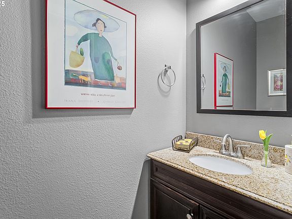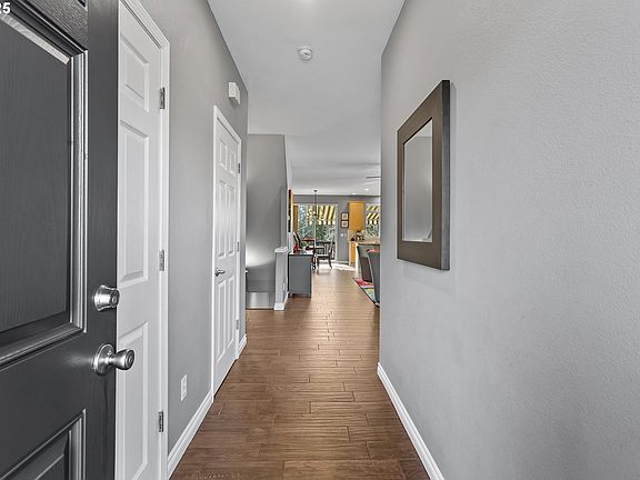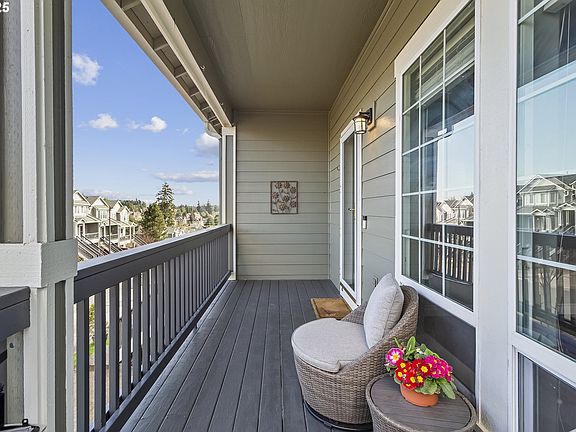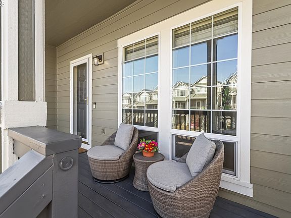 This updated end-unit townhome sits on a hill with stunning views of Mt. Hood and the valley. Recent improvements include a new roof, new gutters, fresh paint, new stairs, a skylight, and newer central air conditioning. Inside, the seller has remodeled the kitchen with all upgraded appliances, installed new flooring, and updated the bathrooms. There is a wonderful oversized deck off the kitchen/nook area with a retractable awning. Downstairs, you'll find a remodeled studio apartment/family room with a kitchenette and full bathroom, perfect for guests or extra living space. The studio level has a large covered patio out the back! The home backs to a peaceful green space and brings in extra light with side windows. A rare double garage (not tandem) and driveway parking add convenience. Plus, there's no rental cap! It is in a great location in a welcoming community. HOA mows the grass in the front, buys and spreads bark dust, and does some plant / tree maintenance as well.