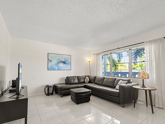 This beautifully furnished condo is situated in one of the most sought-after locations in Century Village East, conveniently close to the main entrance and the clubhouse. Just about 5 miles from the beach, you'll enjoy stunning lake views and breathtaking sunsets from the glass-enclosed patio with sliders.The condo features renovated bathrooms, including a master bath with a stall shower, and a galley kitchen with new cabinets, a microwave, and a stove. A new electric panel and tankless water heater have been installed for modern convenience. The living room is furnished with a sleek sectional, and the bedroom is carpeted for comfort. Ceramic floors run throughout the rest of the unit, which also includes an extra storage closet. The building offers a picnic area with a barbecue overlooking the lake. Residents can take advantage of a wide range of amenities, including sports courts, shows, movies, dances, a gym, classes, card rooms, pool tables, mini golf, and a convenient bus service within the village and errands.