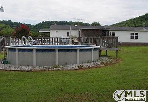 2000+- Square feet 4 bedroom double wide mobile home with brick foundation, 2 full baths, family room , eat-inkitchen, master suite with full bath, large walk-in closet, & small den or office, 3 other bedrooms 3 porches deck above groung pool ,outbuilding