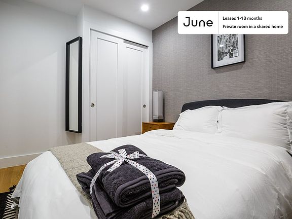 This Queen room in Central Park is available on a 12 month lease or a flexible short term (31 to 364 days) lease. You pick your custom start and end date. Monthly rent rate is determined by furnishing preference, move-in date and move-out date. Speak to a June representative for recommendations on the best stay duration for the lowest rate.