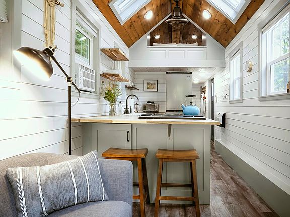 A unique tiny house offering contemporary, Vermont farmhouse luxury in the Green Mountains. This is tiny house vacation living at its finest. The house offers a full kitchen with four-burner gas stove and oven, farmhouse sink, butcher-block countertops, electric fireplace, AC, 40” Smart TV, Starlink WiFi, small soaking bathtub with shower. The bedroom loft with queen bed is accessible by a full set of stairs. A wooded outdoor area with deck, patio, Solo stove, Weber grill, picnic table, and Adirondack chairs name a few features of your outdoor space. Love to hike? Just step out your door ! Come enjoy Vermont in a whole new way! This house lies in a wooded setting across the road from the Ball Mountain Brook. While outside, you can usually hear the brook flowing, which provides nice ambiance! You are just minutes away from some of the best attractions in Southern Vermont. The two nearby state parks, Townshend and Jamaica, have numerous overlook trails and the West River offers kayaking, rafting and tubing. Gourmet dining and designer outlets are a close drive to Manchester, Vermont. Spend a day on the slopes at one of the nearby ski resorts: Stratton, Bromley, Mount Snow, Magic Mountain, or Okemo. Hike or bicycle to one of the popular swimming holes. This is the perfect get away to come to on a weekend or overnight. The house has great rental history as well. So if you are looking for yourself or as a new business venture. Don’t wait ! It won't last long!