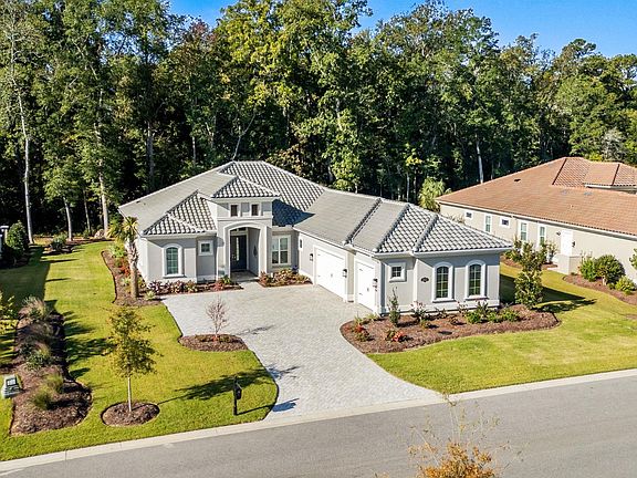 Discover your dream home in the prestigious Members Club Enclave at Grande Dunes. This practically new, custom-built residence offers a spacious and modern design with 4 bedrooms, 3 bathrooms, and a versatile den. Situated on a private wooded lot, this home features an open floor plan that seamlessly blends indoor and outdoor living. Enjoy thoughtful upgrades, including a Rinnai tankless water heater with recirculation system for energy efficiency, and a low-maintenance Leaf Filter system. The home boasts wood-look ceramic tile throughout, enhancing its sleek and contemporary aesthetic. Custom fixtures and Fanimation ceiling fans are installed throughout for added comfort, while upgraded landscaping with extensive lighting creates stunning curb appeal. Entertain effortlessly with a custom outdoor kitchen, oversized screened Lanai, and fully retractable triple sliders that open completely to connect indoor living with the outdoor oasis. Relax in the luxury saltwater spa after a long day of golf while enjoying your favorite beverage. The oversized 3-car garage features extra storage, epoxy floors and plenty of room for your golf cart. Located in Myrtle Beach’s prestigious Grande Dunes community, this 2,600-acre development offers luxurious living with top amenities. Residents enjoy the 25,000-square-foot Ocean Club, featuring fine dining, oceanfront pools, and daily activities. The community also includes two golf courses, a deep-water marina, tennis courts, and scenic trails. Don't miss this rare opportunity to own a nearly new CUSTOM home "over the bridge".