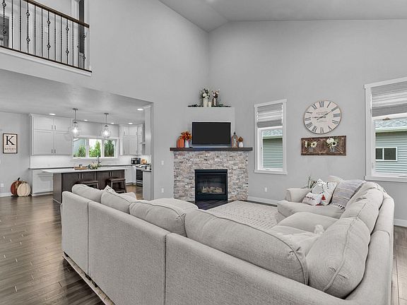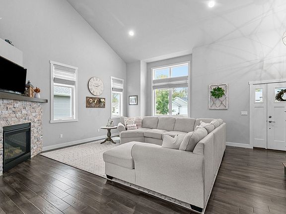 Welcome to your dream home! This elegant 5-bedroom, 3.5-bathroom two-story residence features a spacious 3-car garage, including an extra-deep stall. The bright living room boasts vaulted ceilings & a cozy fireplace, while the beautiful kitchen includes a large island, pantry, & stone countertops. First-floor laundry adds convenience. The primary bedroom features an ensuite bathroom with a walk-in shower & dual walk-in closets. Three additional bedrooms & a full bathroom can be found on the second floor. The finished lower level includes a bar area with a fireplace, a fifth bedroom, a full bathroom, & a bonus exercise room. Garage access is available from the basement. ALL drawers & cabinets are soft close, plus an in-ground sprinkler system with a weather station. Don’t miss this one.