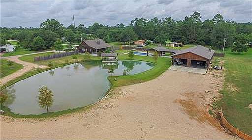 Unique home situated on 5 acres ( 2 parcels) includes an open plan, large pool, catfish pond, outside fireplace and covered patio, guest quarters, 6 car garage, RV shed, and wood shed in a quiet area of N Long Beach.