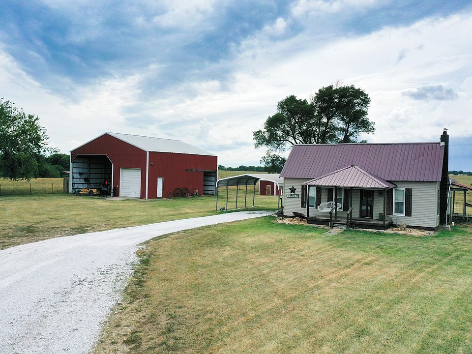 You'll find this charming farm house perched perfectly on the hill side of 80 m/l acres. With a ton to offer you can feel confident in relocating to the slower paced life rural America provides on these Ozarks rolling hills. Inside the 2 (could be 3) bed room, 1 bath farm house you will find a large living area with wood burning stove, dining room big enough for the family dinners, kitchen and spacious laundry. The sizable back patio allows for entertaining and the perfect place to watch the sun set on your very own farm. The 40 by 40 pole type barn has all the room needed for the tools and toys of the farm and or an RV or boat with Stockton Lake being just minutes away. Barn also houses a 16 by 30 shop with concrete and electric. The maintained pasture is crossed fenced with multiple ponds, coral and automatic waters and is ready and waiting for your livestock.