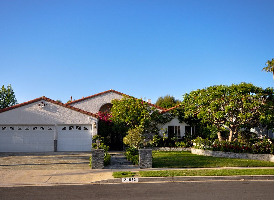 Magnificent Spanish estate home on quiet cul-de-sac street in desirable Chatsworth neighborhood. Classic curb appeal with lush landscaping. Private courtyard entry with fountain. Gorgeous leaded glass front door opens to formal entry and elegant living room with soaring ceilings, fireplace and French Doors to yard. Spacious family room with stone tiled flooring and vaulted beamed ceilings. Adjacent remodeled kitchen with enormous center island. Rich granite counters and a bevy of high-end appliances. Relax and enjoy the inviting master bedroom complete with an abundance of custom storage, vaulted ceiling with fans, a fully organized walk-in closet and an upgraded master bathroom. Don't miss the attached sun-room! Two additional bedrooms have window seats with custom storage. The lavish library includes a built-in desk and custom cabinetry. Entertainer's will appreciate the amazing back yard. The covered patio has a full-featured outdoor kitchen and ceiling fans. Behind the heated pool and spa you'll find a second private patio area and fountain. There is a 3 car garage with one space dedicated to an air conditioned craft room/workshop. There is so much to appreciate. What an amazing house for the money!