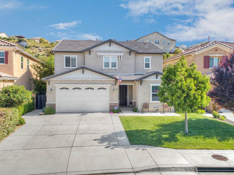 MODERN, 5BD, 3BA home w/over 2,700 SQFT of open living space a DOWNSTAIRS bed & bath and PAID OFF Solar!! This adorable home features beautiful wood flooring, recessed lighting, shutters, neutral grey paint tones throughout, ceiling fans, ring doorbell, new flooring in upstairs bathrooms, dual pane windows, energy efficient dual zoned HVAC system, high energy saving lights, interior, and ceiling walls are energy and sound efficient, extended interior doorways and much more!!! Upon entering you will find a spacious formal living room, downstairs bedroom and bath, light and bright family room with fireplace and opens to the dining area and kitchen. The center island kitchen features stainless steel appliances, granite counter tops and tons of storage and counter space! Upstairs find a large master suite dual his/her sinks, separate glass enclosed shower, and soaking tub. Three additional spacious bedrooms and bathroom with dual his/her sinks. The exterior features an upgraded oversized driveway, upgraded drains and rain gutters around all areas of the exterior and motion sensor lighting at both the rear and sides of the home. Beautifully landscaped front and rear yard. Huge patio cover installed the length of the home and was built to withstand a high amount of weight with the intent to build a balcony off of the master bedroom.
