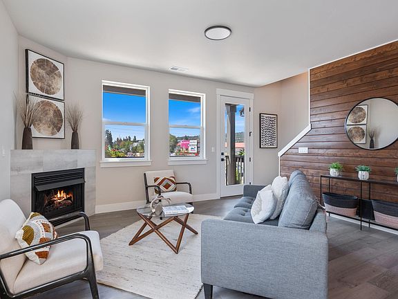 Discover the Metolius floor plan—an airy, light-filled end unit in the sought-after Calaveras Luxury Townhome community. Thoughtfully designed with high ceilings, durable LVP flooring, and stylish Northwest Contemporary finishes, this brand-new home offers comfort, flexibility, and modern living. The open-concept great room features a cozy gas fireplace and opens to a covered balcony for year-round enjoyment.
