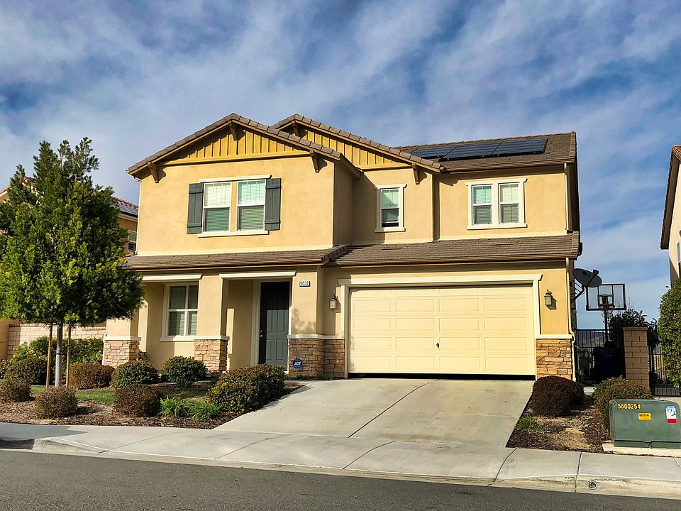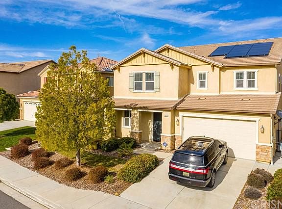 Outstanding views and a true open concept home await you on the quiet cul-de-sac in Saugus' popular Plum Canyon! With 5 bedrooms plus a large loft upstairs and a spacious kitchen/family room downstairs this home has the real usable space that is so hard to find. This model has a second "mini master" downstairs with full bath and walk-in closet plus another half bath for guests. Upstairs you will find 4 good-sized bedrooms with walk-in closets and the master or "primary" bedroom offers a large deck to enjoy the amazing view. Nice plank-style flooring downstairs, tile in laundry & bathrooms and upgraded carpet, all very neutral. Spacious kitchen with granite island and counters, white cabinets, stainless appliances and a walk-in pantry and separate work station. Great use of space! The owned solar covers all the owners electric costs and the tankless water heater is a great addition too. Private yard with covered patio and no rear neighbors to block the view of all of Plum Canyon. Move-in condition and great location!