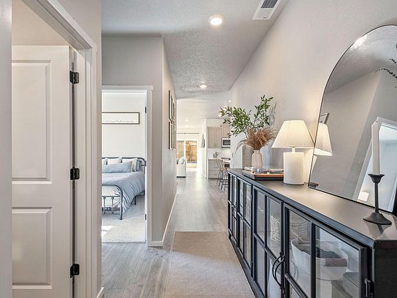 Better than new 1,435sf home in Stone Creek! Corner lot provides extra open and bright feel to this beautiful home. Glass storm door and LVP floors welcome you in, and the kitchen will keep you here! Matte white GE Cafe appliances, modern painted cabinets, quartz countertops, gold hardware, and the cutest pantry make this space the true heart of the home! Large dining space and island seating offer plenty of room for entertaining; open living room w/ electric fireplace keep things cozy and homey. Two bedrooms located at front of home, w/ Primary suite tucked away at the back - creating great bedroom separation for families, guests, or home office set up. Primary en suite w/ dual vanity and walk-in featuring California Closet systems completes this restful space. Step out to the back patio and Trex deck with well planned landscaping - perfect for evening cocktails, morning coffee, or a pup hangout anytime! Located just one block from CO Canal Trail and 1/4 mile from Silver Rail Elem!
