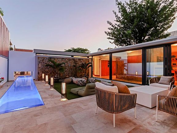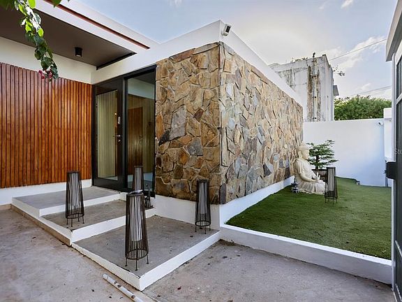 Architectural Masterpiece in the Heart of Ocean Park Welcome to 2054 Calle España, an extraordinary residence where design, security, and innovation converge. Originally built in 2001 and inspired by the timeless architectural philosophy of Frank Lloyd Wright, this one of a kind home seamlessly blends natural elements with modern luxury. Thoughtfully remodeled, it stands as one of the most unique and secure homes in all of Puerto Rico. Bathed in natural light from above and below, the home features distinctive skylights and floor level windows that accentuate its open, organic feel. Locally sourced wood accents, natural stone floors, and textured exterior walls echo the harmony between nature and architecture. Exceptional Security & Comfort Fortified with bullet resistant glass throughout the entire house, this is likely the only home in Ocean Park, and possibly the island, that offers such a level of 24/7 peace of mind. Triple pane glass reduces outside noise by over 30 decibels, making the interior a true sanctuary. Built to endure, it also provides exceptional hurricane resilience. Cutting Edge Smart Home Technology Multiple entry points are equipped with state of the art biometric access systems including fingerprint, passcode, facial recognition, and smartphone connectivity. Inside, no detail has been spared: Fulgor Milano kitchen appliances, light quartz countertops, elegant wallpaper finishes, designer sinks, reverse osmosis drinking water system plus whole-home water filtration, remote controlled blackout curtains in all bedrooms and living room, Midea air conditioning systems and Ring security cameras operable from anywhere in the world, and custom wood lighting throughout including a floating canoe light in the dining area paying tribute to Puerto Rico’s cultural heritage. Spacious Indoor/Outdoor Living Offering approximately 2,000 sq ft of refined interior space and over 3,000 sq ft of inviting exterior space, the home includes 3 bedrooms and 2.5 bathrooms. Indoor/outdoor living is enhanced by three large sliding doors in the living room, two in the hallway, and two more in the master suite, blurring the line between interior comfort and lush outdoor surroundings. The master suite features dual walk in closets, dual vanities, and dual rainfall showers. A guest bedroom with both interior and exterior access adds privacy and flexibility, while a third bedroom doubles as an office with a built in queen sized Murphy’s bed and generous storage. Outdoor Oasis Outside there is: a heated salt water pool with multi vibrant lighting, a propane generator with an additional noise dampening box, a large water cistern on the roof, a Tesla vehicle charger, remote controlled parking gates, and an additional spacious storage unit accessible outside. The house is being sold furnished and the closing can happen as early as December 31st 2025.