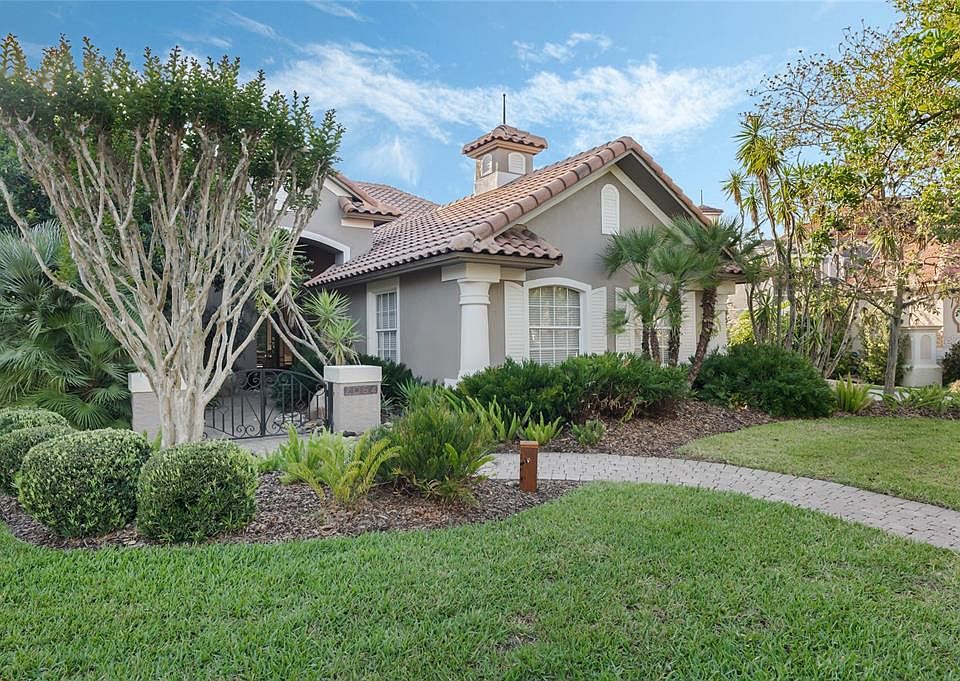 This exquisitely appointed Mediterranean-style custom home offering 4-bedrooms, 3-bathrooms, is nestled in a lush tropical setting within the prestigious 24-hour security-guarded Stoneybrook Golf Community. Perfectly positioned on a quiet cul-de-sac street with no through traffic, this beautifully remodeled and artfully decorated residence exudes taste and style worthy of an architectural magazine. From the front yard, a meandering brick paver path leads to a tranquil Zen garden foyer. Through the stately mahogany double front doors with inset glass, a stunning interior welcomes you. With the backdrop of serene breathtaking verdant forest views and soft resonant tones from a wind chime, all the luxurious details begin to converge. From the graceful 12-foot ceilings with crown moldings, the elegant travertine and hardwood floors, to all the architectural details and designer fixtures throughout, this home is truly unparalleled. The heart of the home is a resplendent chef’s kitchen featuring high-end custom cabinetry, Cambria quartz countertops, and premium appliances. Expansive double-pane sliding glass doors open to a screen-enclosed lanai, where travertine pavers frame the serene focal point: a stunning formal Koi pond. Beyond, the backyard has been cultivated into an immersive garden oasis to complement the wooded conservation view, complete with mature tropical landscaping, black aluminum fencing, stone-paved paths, LED lighting, and a charming gardener’s pergola. The primary suite is a luxurious retreat with a seating area, frameless glass walk-in shower, garden tub, and a Brondell bidet toilet. The secondary bedrooms offer flexible living arrangements: two share a Jack-n-Jill ensuite bathroom, while a separate bedroom enjoys its own adjacent bath - ideal for guests or a home office. This exceptional home offers features too numerous to list. Please see the attached Features Sheet for details. Residents of Stoneybrook enjoy a resort-style lifestyle with access to a state-of-the-art clubhouse with a fitness center, swimming pools, playground, sports field, courts for tennis, basketball, and pickleball, all set amidst lush walking trails and golf vistas. Digital cable and high-speed internet are included in the HOA! Located near top-rated schools, Waterford Lakes Shopping Village, Avalon Park Town Center, UCF, Research Parkway, and highway access via 528, 408, and 417, this home is a complete package and a rare find. Don’t miss this opportunity, schedule your private showing today!