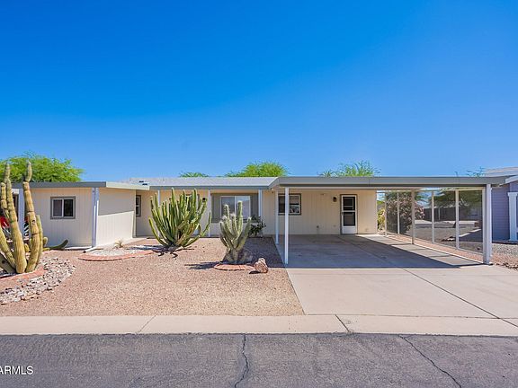 remodeled kitchen with luxury vinyl flooring, new counters, sink, and reverse osmosis. Spacious layout with walk-in closets, updated appliances, and leveled foundation. Dual gas/electric hookups. Recent upgrades include 2023 metal roof (warranty), fresh paint (2024), and updated drip system. Relax in the Arizona room or landscaped yard with a fruit tree. Includes 2-car carport and storage shed. Approx. 1,280 SF + 64 SF sunroom. Fairways residents are welcomed as part of the Sundance community as well.