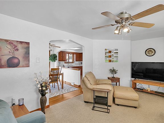 Introducing this impeccably maintained 2-bedroom, 1-bathroom brick ranch conveniently situated near the parkway, grocery stores, shopping centers, and the airport. This home has a very comfortable layout and neutral decor. A sliding door in the dining room takes you out to the covered deck. Enjoy upgrades including Anderson windows with venetian blinds, a newer furnace and A/C. Complete with a 1-car garage and a full basement featuring a level walk-out to the fenced-in backyard. A true find!