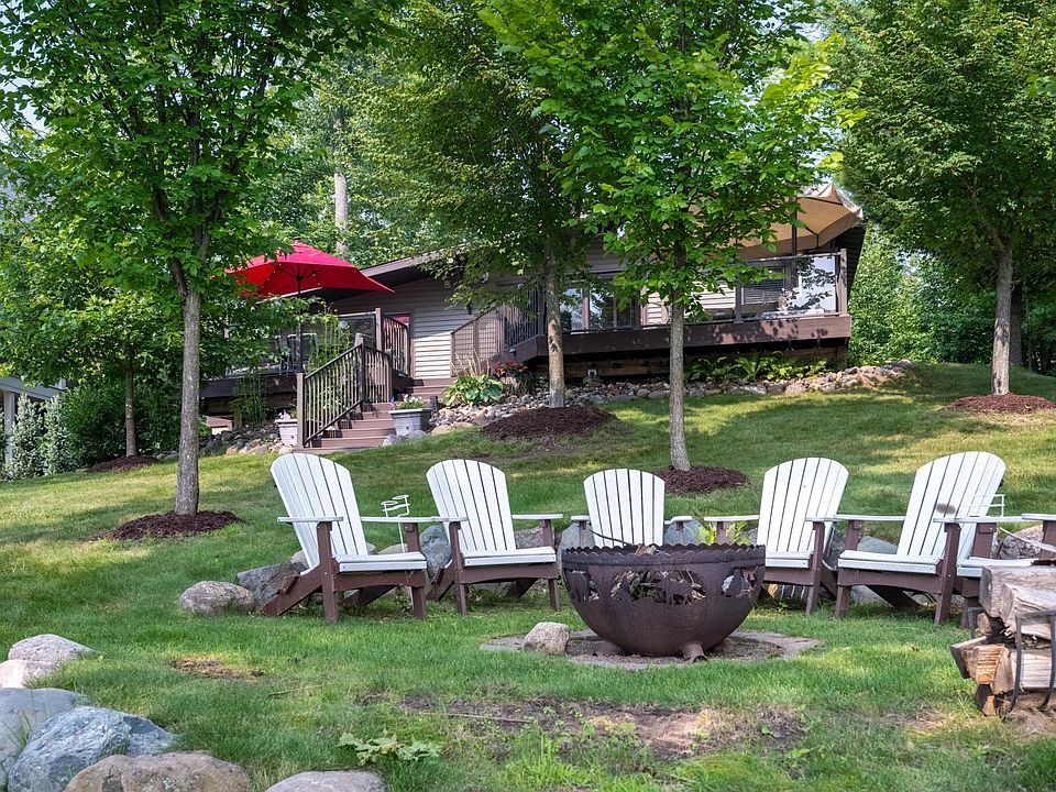 Enjoy tranquil mornings and cozy evenings on the oversized 40x18 composite deck, perfect for taking in serene lake views with your favorite beverage in hand. The fully finished bunkroom above the garage provides additional space for guests or flexible year-round use and is included in the total finished square footage.
