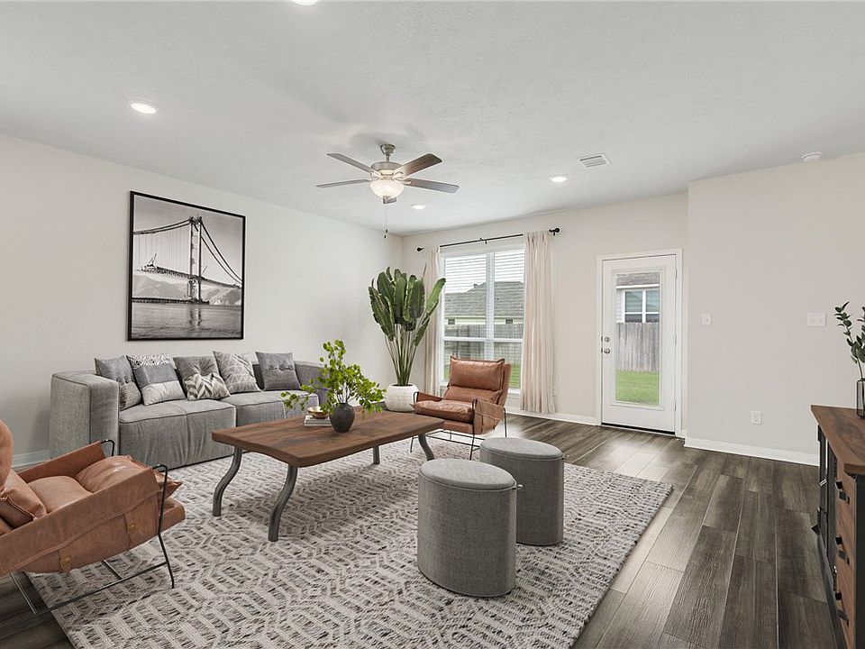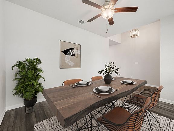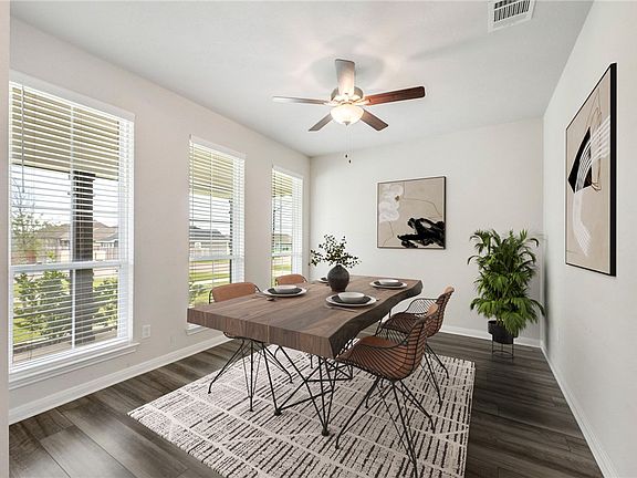 Location, location! Welcome to this one-owner home tucked into the highly desirable Edgewater community. Lightly lived in and impeccably maintained, this property offers a blend of comfort, thoughtful design, and everyday functionality—all set on a generous 0.21 acre homesite. With 3 bedrooms and 2 full bathrooms across 1,917 square feet, the home features a smart, open-concept layout ideal for both relaxed daily living and lively entertaining. Upon entry, you're greeted by a versatile flex space— equally suited for a home office, playroom, formal dining, or second living area. Curb appeal shines with lush landscaping, a welcoming front porch perfect for morning coffee, an oversized driveway, and wide street frontage for easy guest access. At the heart of the home, the granite-topped kitchen island flows effortlessly into the living and dining area. Stainless steel appliances, pristine cabinetry, and a stylish tile backsplash add both form and function. Each bedroom is outfitted with an upgraded ceiling fan and the garage features a convenient key pad. Step outside to a peaceful backyard retreat where you can unwind and take in the Texas sunsets from your private patio. Edgewater’s location puts you just minutes from shopping, dining, hospitals, Texas A&M University and the Traditions Golf Course. Enjoy the plentiful Edgewater amenities: a park, pavilion, picnic tables, basketball court, playground, fitness areas, walking paths, and more!