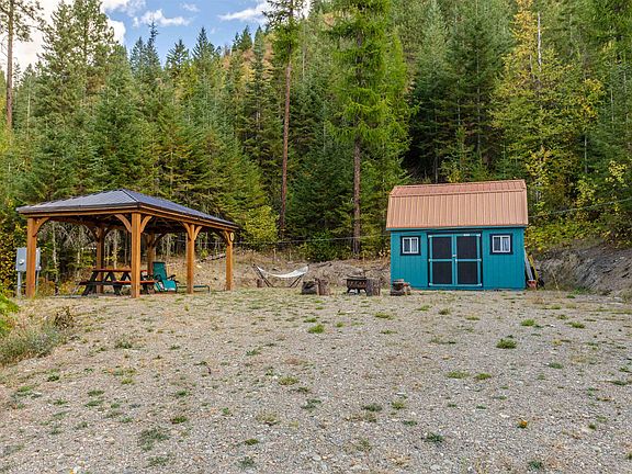This stunning 5.5-acre Cusick property offers electrical power and a cleared area perfect for building or parking an RV, complete with installed hookups. You'll enjoy deeded access to a boat launch on the Pend Oreille River, enhancing your outdoor experience. The property is both private and serene, yet conveniently located near multiple lakes and just a short drive from year-round activities, including 49° North Ski Resort, Priest Lake, and Kalispel Casino (about 24 miles away). Additional features include a 12x16 cabin with a loft, a shed with a bed and mini fridge, a 12x20 lighted gazebo with a power station, a cozy fire pit with rustic seating, and a dog run. Adjacent to ORV trails on public lands and year-round access from a publicly maintained road. The well was installed in 2022, fiber internet is available at the curb, and the property is adorned with wild berries, including strawberries, thimbleberries, and bunchberries.