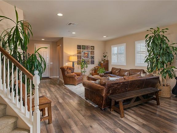 This turnkey Echo Ridge home is the perfect place for a growing family! Walk in and you're welcomed by a light and bright great room with beautiful wood laminate floors and lots of windows. The kitchen features a large kitchen island, walk in pantry, quartz counters, and stainless steel appliances. In the family room you'll find built in shelving and cabinetry which make for a wonderful place to display a home library. The downstairs bedroom and full bath offer a bit of privacy for guests or older children. Upstairs offers a spacious loft with more built in shelving and a window seat. This space could be used as a home school, office, or playroom! The master suite has dual sinks plus a vanity, with a large walk in closet. This home was finished with recessed lighting, ceiling fans, shutters, and dual pane windows. Enjoy views of the mountains surrounding the SCV from your own backyard! The covered patio allows for plenty of space to put an outdoor dining set and the large lawn is perfect for children and pets to enjoy. Solar has been paid off, keeping utility costs low! Centrally located within the Santa Clarita Valley making for an easy commute where ever you're going! Located near local schools and city parks.