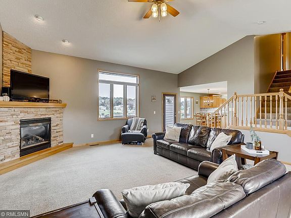 Spacious modified two story on 2 acres featuring solid wood floors, stone gas fireplace, maple/birch cabinets, granite tops, center island, large deck with hot tub, main floor office, mud room/laundry off garage with sink & lots of cabinets, large lower level family room with tongue & groove wood ceiling & a built in bar, heated garage, RV/camper parking next to garage! Don't miss out!