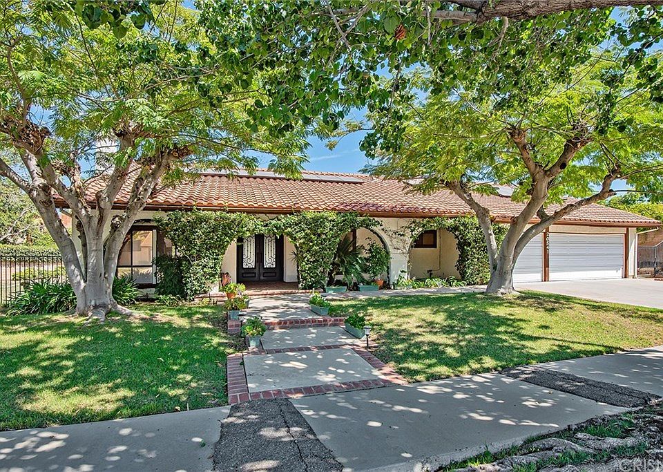 Popular single story home on a quiet cul-de-sac in desirable Chatsworth neighborhood * Huge lot * Walk through new double iron and glass doors to soaring high ceilings in bright living room with chandelier and brick trimmed fireplace * True formal dining room with wet bar and built-in china cabinet * Spacious family room with high ceilings, recessed lights, built-in cabinets * Kitchen features slab granite counters and bar, stainless steel appliances, recessed lights, big breakfast area, and view of the the backyard * All bedrooms are large and the fourth is currently an office/den * Master suite opens to the backyard through a slider and has vaulted ceilings, walk-in closet, private bath with double sinks, separate tub and shower * Private backyard has sparkling pool and spa, garden, and giant side grass area * Laundry room leads to the 3 car garage * Tile roof * Solar energy * Convenient to the new Vineyards Shopping Center and Mason Park ***