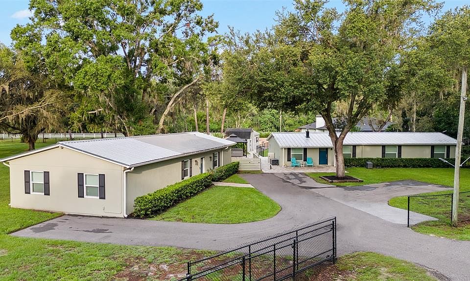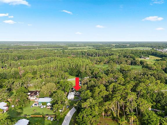 One or more photo(s) has been virtually staged. What an Incredible Property!!! 3/4 Acre in a Peaceful Country Setting! Located on a beautifully landscaped and totally fenced lot, there is no HOA or CDD and is perfect for you to enjoy. There is a second structure for recreation or for your office space. THE SECOND STRUCTURE IS NOT BEING MARKETED AS HABITABLE SPACE. The home is 3BR/2BA approx. 1,516 sq. ft., crown molding, wood-cased windows, oversized walk-in closet, and luxurious ceramic tile bath in the primary suite. Gourmet kitchen has quartz countertops, solid wood cabinets, upgraded stainless steel appliances include double oven, range, refrigerator, dishwasher, and garbage disposal. Inside laundry with washer & dryer included. 342 sq. ft. screened, roof-covered lanai across the back of the home overlooking the privately fenced back yard. NOTE: BLACKTOP PARKING AREA COMPLETED AFTER PHOTOS TAKEN! Ample parking space for multiple vehicles. Second structure has 1,416 sq. ft. In addition to main area here, could be the perfect office for your business, or a great recreation area and there are two additional rooms with ceiling fans. There is plenty of room for that pool table or any other entertainment systems. The oversized double-head shower, double vanities, and storage closet complete the bathroom. Inside laundry with washer and dryer included. Upgrades & features in home and second structure include luxury vinyl tile flooring, newer electric, plumbing, AC, and windows, metal roofs, large new septic system (2025), deepened well (2025). Bring your BOATS, RV’s and any other toys you may have. Outdoor Living includes: huge private and fenced backyard, brick paver gazebo area and outdoor Jacuzzi, additional storage shed and separate workout area. BRICK PAVER WALKWAY TO HOT TUB, SHED AND WORKOUT ROOM. Located just minutes from shopping, dining, and schools ... this property offers the best of peaceful country living with modern convenience. Easy to show — please allow 2 hours’ notice for all showings.