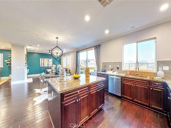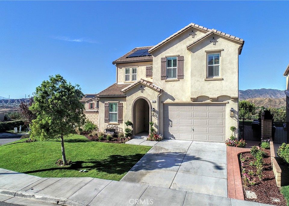 Do not miss seeing this beautiful home on a large corner lot w/ panoramic views. Great curb appeal & landscaping w/ a drip system. Paid off solar is a huge bonus! Exceptional Chef’s Kitchen featuring granite counters, oversized center island, tile backsplash, & stainless steel appliances including a newer built-in refrigerator, plus a walk-in pantry. Kitchen opens to the Large Family Room w/ gas fireplace w/ switch. Upstairs Loft w/ views. Downstairs office/den that can be used as a fifth bedroom. Double door entry to very spacious Primary suite w/ walk-in closet. Many updates and upgrades throughout, including remodeled primary bathroom w/ frameless shower & herringbone marble floors, upstairs secondary bedroom en suite bath w/ marble floors & walk in closet. Smart light switches, upgraded all lights w/ recessed LED, ceiling fans, premium in ceiling speakers, newer flooring upstairs, downstairs bathroom has been remodeled w/ Bidet toilet. Main electrical panel has built in transfer switch for generator backup power. Additional electrical panel in backyard has 70 amp power for spa or additional backyard equipment. Extra large lot w/ an additional area that could possibly be used to build an ADU (Accessory Dwelling Unit). Bamboo hardwood flooring & wide blade plantation shutters throughout, crown molding, extra large baseboards, formal Dining room, dual zoned A/C, 9 ft ceilings throughout, extra tall 8 ft door frames, tankless water heater, In ceiling speakers in garage & much more. This amazing home is a winner!