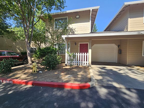 Inside you'll find vinyl flooring throughout, HVAC for heating/cooling, a washer and dryer in unit and a kitchen equipped with a stove, refrigerator, microwave and dishwasher. Downstairs you have 1 bathroom and 1 bedroom, and upstairs are the other two bedrooms and the 2nd bathroom. Outside you have a connected 1 car garage (with auto opener) and a covered patio space to relax on.