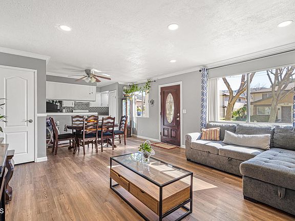 Welcome to this cozy single story 2 bedrooms 1 bathroom condo. It is a great starter home with an excellent location of the complex. Your view to the greenbelt, close proximity to the mail boxes, trash cans, the pool, the park. Come take a look and see for yourself. This property won't disappoint you. You have an enclosed garage (shared). Laundry facility. When you enter this cozy home, you'll find pride of ownership and feel the positive energy of this home. The kitchen has granite counter top, a gas stove, ceiling fan in the dining area, it's light and bright. Recessed lighting, crown molding, smooth ceiling. A beautiful stained front door, the unit has an AC, the furnace was replaced in 2017. The best part, you have no one else on top of this unit. Don't wait, and lose an opportunity!!! 😊