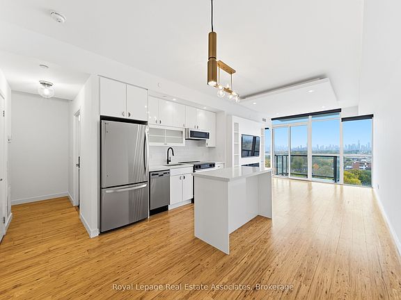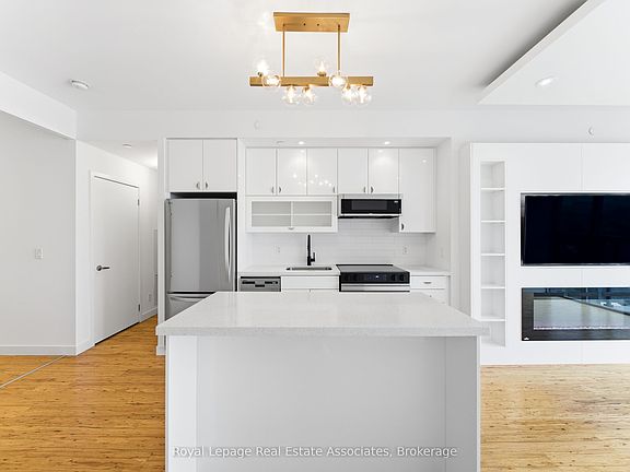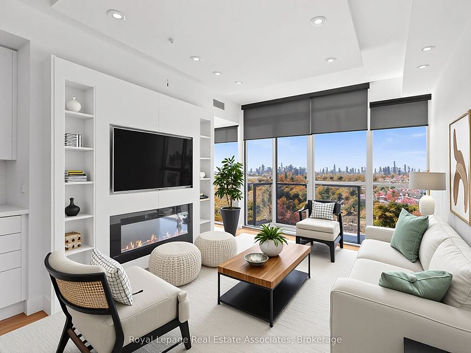 A curated, custom-designed residence that is truly one of a kind. This elevated two-bedroom, two-bathroom corner suite showcases captivating unobstructed views of the lake, the Toronto skyline, and becomes a stunning panorama that shimmers with cascading lights after dark. Located in a boutique, condominium on the highest floor along the Danforth, it offers upscale living with ambiance in one of the city's trendiest neighbourhoods. Thousands have been invested in premium upgrades and refined craftsmanship. Features include an abundance of natural light with floor to ceiling windows, custom closet organizing systems, a built-in entertainment unit with shelving, and an integrated fireplace, 9-foot ceilings, a striking drop ceiling with recessed lighting, a kitchen island and large balcony with sweeping views you'll never tire of. The designer kitchen is finished with brand-new stainless-steel appliances and quartz countertops. The primary suite includes a luxurious four-piece ensuite. Both bedrooms showcase double mirrored closets, tailored window treatments, and sophisticated custom lighting. A rare offering that blends exceptional finishes, breathtaking 360 views, and an upscale lifestyle. Steps to Woodbine Subway Station & TTC access. Enjoy being surrounded by quaint cafes, shops, restaurants and Greek Town. Walking distance to various grocery stores, neighbourhood amenities, Lynn Park, The Beaches, and so much more.