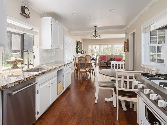 Located in the Award Winning Palos Verdes school system on a quiet tree lined street. The 3 bedroom 2 bath home is in move-in ready condition. Rustic hardwood floors have been installed thru-out the home. The gourmet kitchen with granite counters and Viking appliances opens to a spacious family room with double doors leading to the cover rear patio. The open floor plan has a gas and wood burning fireplace and custom flat screen creating the ultimate movie experience. The master bedroom enjoys a master bath with walk-in shower. The rear yard is lushly landscaped and has numerous trees and flowers affording complete privacy. A huge covered patio creates the ultimate sitting area with morning sun and afternoon shade. Additional features include a newly installed paver driveway, Air Conditioning, Plantation shutters, crown molding, and recessed lighting. Great location and condition makes this a great buy.