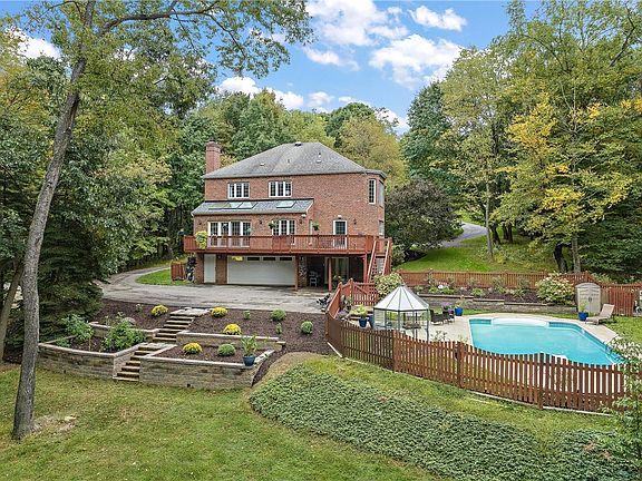 Nestled in the serene enclave of private Sewickley Hills, this exceptional 4-bedm, 2 full bath, 2 half bath residence offers an idyllic retreat on 5 acres of lush, wooded land.Thoughtfully upgraded, this home is a harmonious blend of modern luxury and natural beauty.You'll be greeted by a captivating ambiance, with gleaming hardwood floors underfoot and the warmth of a stone wood-burning fireplace.The heart of the home is an updated gourmet kitchen, boasting high-end built-in appliances that will delight any culinary enthusiast.Working from home is a pleasure in the inviting office, complete with built-in bookshelves and serene views of the private wooded property.Step outside onto the expansive decks, where you can savor your morning coffee or entertain guests while overlooking the inviting pool and beautifully landscaped gardens.As you explore the 5 acres of this property, you'll discover of a tranquil oasis that provides a sense of seclusion and connection with nature. Visit Video