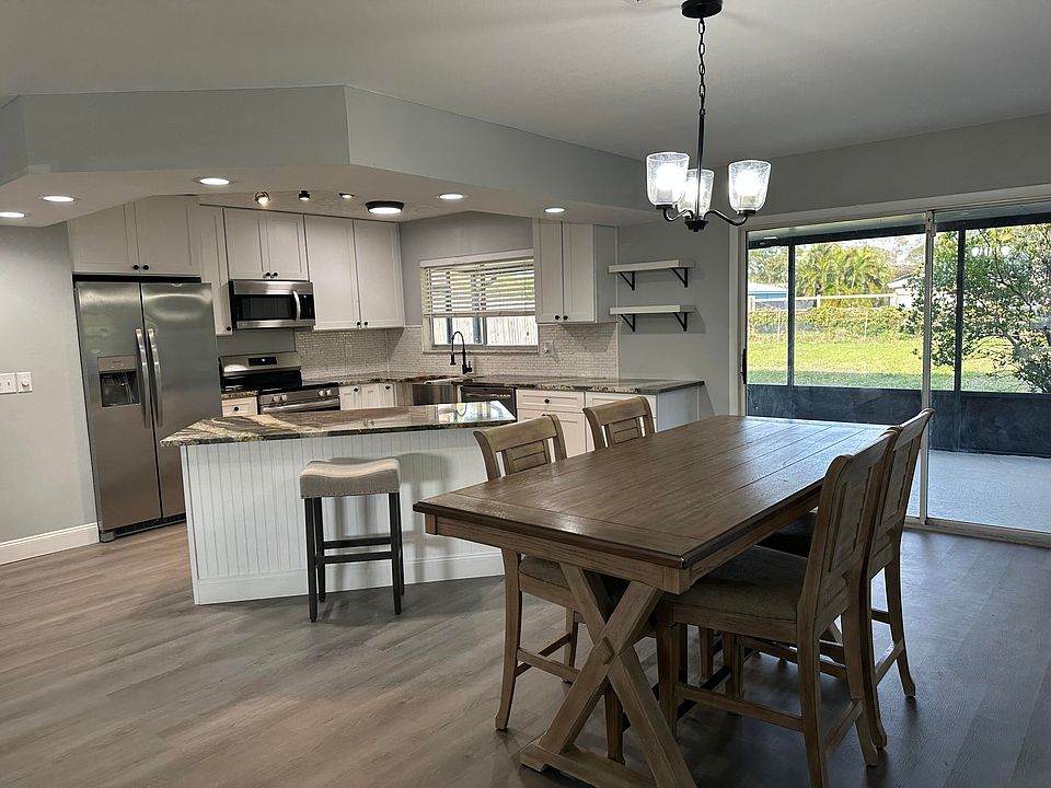 TOTALLY RENOVATED GEM IN THE HEART OF PORT ST. LUCIE. This 4/2/1 will delight you upon entry with its screened in front porch & cozy inviting feel. The home has been renovated with new Stainless Steel appliances, All wood shaker cabinets w/soft close hardware, level II granite countertops, & tiled backsplash in the kitchen. The bathrooms were replaced w/wood vanities, Level II granite countertops, vessel sinks, glass sliding shower doors, tiled showers, w/Moen fixtures. Floors have been replaced throughout w/LPV & 5 1/4' baseboards, new lighting, ceiling fans and new hardware on doors. Enjoy a 330 sq. ft. screened in lanai overlooking a large private fenced in yard. LOCATION IS KEY WHEN PURCHASING R.E.-Home's close to shopping, restaurants, hospitals & parks. Seller financing is available