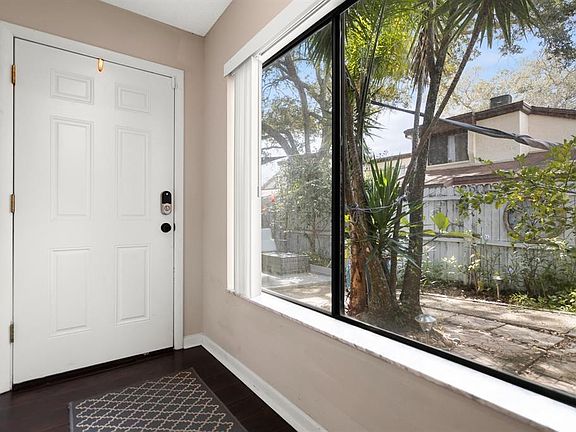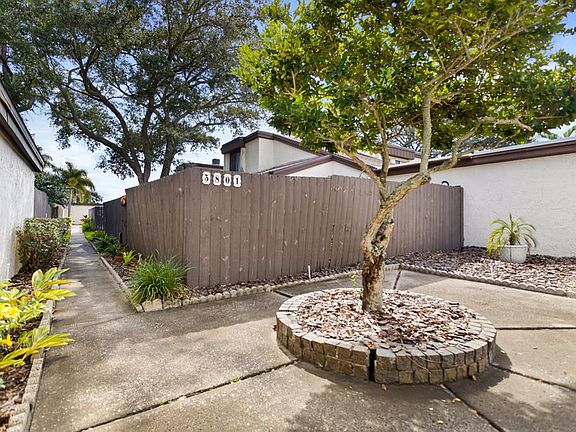 Cozy Clearwater Condo!!! Adorable 2 bed 2 bath fully remodeled condo. The kitchen comes complete with new white cabinets, stainless steel appliances, granite countertops, and a breakfast bar which opens to the living dining space. Throughout the living space you will find engineered hardwood flooring with vaulted ceilings and plenty of natural light. This is an open concept split floor plan reflecting 1 Full Bath & Bed upstairs and 1 Full Bath & Bed downstairs. The downstairs bath has a walk in shower that has been designed with new Italian tile and a glass frame door. New grey tile in the downstairs bedroom with a large window overlooking the enclosed deck. The outside deck is a private fenced in oasis with plenty of party space and a covered outdoor jacuzzi. There is also an oversized storage room with washer and dryer. In addition to all of these upgrades, the unit comes with a nest security system with cameras digital coded lock on the front door, doorbell, & AVC thermostat all connected to a smart system app. Newer electrical panel and water softener system. For parking and/or additional storage there is a 1 car garage that has had recently had a new door installed. The community comes with a swimming pool, community tennis courts, and additional parking area for boats. Walking distance to Publix, Walgreens and a short drive to shopping, restaurants and the beaches.