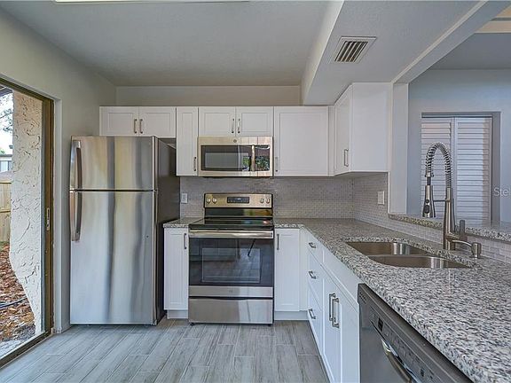 ** Back on the Market!**. Buyer's financing fell through. Almost EVERYTHING in this home is BRAND NEW!! Completely renovated by an award winning Interior Designer, this gorgeous home has it all! 2 bedrooms plus a spacious loft, 2 full bathrooms and a one car garage. You'll love the gorgeous, BRAND NEW ceramic plank tile flooring and designer paint throughout. BRAND NEW white solid wood cabinets in this light and bright kitchen adorned with granite countertops and BRAND NEW stainless steel appliances. The kitchen looks out into the HUGE Greatroom complete with a dramatic, soaring ceiling! The beautiful BRAND NEW cabinetry and granite continue through the two bathrooms accompanied by BRAND NEW shower tile, sinks, toilets and fixtures. Even the AC is only one year NEW! This is like walking into brand new construction in an wonderfully established neighborhood! Condo fees include building insurance and roof escrows, cable, water, sewer and garbage! The community has a large pool, recently resurfaced tennis courts and there is boat/RV storage (extra fee when available). Located close to shopping, restaurants, and our award-winning Clearwater beaches! Come see this one soon. The beautiful ones go quickly!