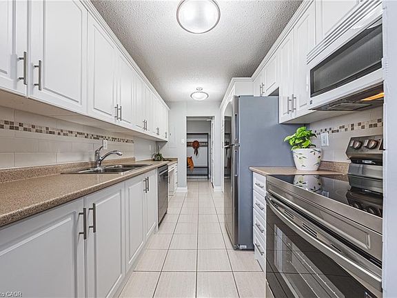 Bright and Beautiful 3-Bedroom Corner Unit with Breathtaking Views Welcome home to this immaculate, thoughtfully designed 3-bedroom corner condo—where stunning views melt away the stress of the day. This spacious unit features engineered hardwood floors throughout the living room, dining area, and hallway, complemented by elegant crown moulding for a refined touch. The well-appointed kitchen includes a brand-new stove, a 2 to 3-year-old dishwasher and refrigerator, and intelligently designed cabinetry with a broom closet, pot drawers, and pantry—all blending seamlessly for both style and function. The generous primary bedroom offers a walk-in closet and a 4-piece ensuite bathroom, complete with more of those out-of-this-world views. The second bedroom and third bedroom (or office) are both well-sized, providing flexibility for your lifestyle. For added convenience, enjoy in-suite laundry and ample storage space. Located just a short walk from shopping, public transit, places of worship, and parks, this condo offers superb access to everything you need. Major highways are also within easy reach, ensuring effortless connectivity to other destinations. As part of a vibrant community within the building, you’ll enjoy a sense of belonging and camaraderie. The condo fee covers all utilities, including heat, hydro, central air conditioning, water, Bell Fibe TV, 60% of the internet, as well as exterior maintenance, common elements, building insurance, parking, and guest parking. Experience a lifestyle of unmatched comfort and convenience—welcome home!