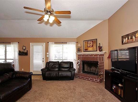 Great Home in Established Neighborhood with Good Curb Appeal! Living Area with Brick Fireplace leads to Large Eat In Kitchen with Lots of Counter and Cabinet Space! Black Appliances and Pantry are Wonderful Features for this Home including the Window over the Kitchen Sink! Trey Ceilings in the Master and Walk In Closet in the Bath are Wonderful! The Huge Privacy Fenced Back Yard is Perfect for Entertaining Guests under the Covered Patio.