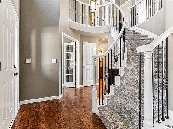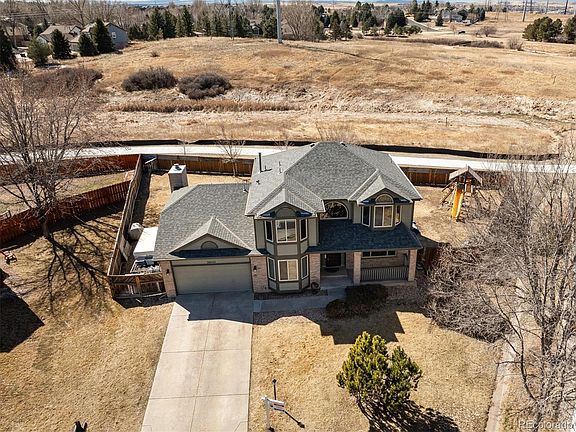 THIS IS IT! Amazing Updated home in back of Cul-de-sac on Open Space in popular Rowley Downs! 5 beds plus main floor office, 4 baths, finished basement floorplan with over 3100 finished sqft sitting on a spacious 0.23 acre lot. BRAND NEW carpet, interior doors/hardware, rod-iron railings plus many freshly painted interior rooms & trim. Notice the hardwood floors on main level & upgraded lighting thruout! Flowing floorplan features a centrally located kitchen- open to the breakfast nook, family room & dining room (wall between the dining & kitchen removed to add a more open feel). Remodeled kitchen boasts new 42” cabinets/lower drawers/wall pantry, tumbled granite countertops/tile backsplash & slate appliances. Take one step down to the spacious family room w/vaulted ceiling & fan, impressive wood-burning brick fireplace & many large windows for natural light. Sizeable main floor office has bay window & French doors. Updated 1/2 bath & large laundry room with cabinets/shelf complete the main floor. Upstairs find the grand Primary Suite featuring vaulted ceiling w/fan, bay window & massive walk-in closet. Custom barn door leads to fully updated 5-pc Primary bath with granite counters, corner shower, free-standing tub & heated tile floors! 3 spacious secondary bedrooms & freshly updated 4-pc hall bath also upstairs. Full, finished basement offers more living & storage space: bedroom #5, updated 3/4 bath, rec/bonus room & study area plus multiple storage spaces w/shelving. Attached garage has more storage space, lofted shelves & attic storage. Outside is the substantial backyard boasting a large, expanded deck & the privacy of open space! Bonus: Fenced in area for RV/trailer/boat storage. Newer exterior paint, roof (2020) & covered front porch add great curb appeal. Convenient Parker location minutes to Mainstreet, Public library, Parker Town Pool & farmer’s market plus ample dining & shopping. Walk to elementary school/parks, miles of trails. Includes Buyers warranty.