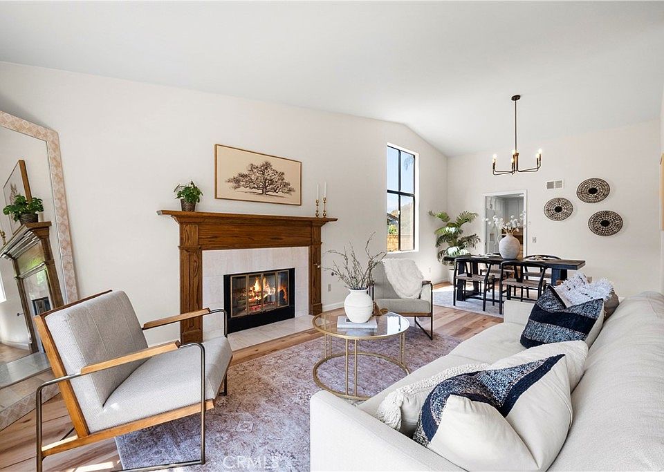 Dive into this delightful 4-bedroom, 2-bath single-story Pool home, nestled within a serene double cul-de-sac in a charming Saugus neighborhood. As you step inside, you'll be greeted by a freshly painted interior featuring vaulted ceilings and new vinyl-plank flooring. The open floor plan seamlessly connects the spacious living room - with a fireplace - to the formal dining room, kitchen, and spacious family room. The kitchen features granite countertops, stainless steel oven/range, dishwasher, built-in microwave, and plenty of recently painted cabinets. It's perfectly situated between the family and dining rooms, making it ideal for both entertaining and daily living. The family room showcases a brick fireplace and a large sliding door, offering ample natural light and access to the expansive backyard with a sport-style pool. The primary bedroom is a lovely retreat with a wall of closet space featuring mirrored doors, an en-suite bathroom, and a small walk-in closet. The three additional bedrooms come with wooden blinds and newly installed ceiling fans, ensuring comfort throughout the year. The attached two-car garage provides direct access to the home through the laundry room, equipped with in-room laundry hookups and overhead cabinets for added storage. Recent updates include a newer AC/furnace and ducting (2023), rear roof replacement (2024), and copper re-piping. Conveniently located near parks, shopping, restaurants, and everyday essentials, this home offers the best of Saugus living with no Mello Roos or HOA fees. It's truly a must-see and a wonderful place to call home!