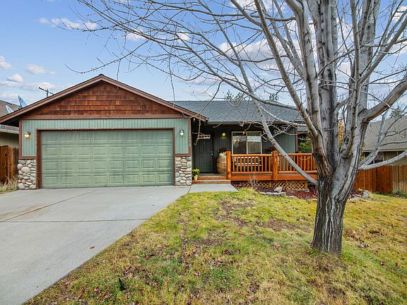 Located in the desirable Paulina Peaks neighborhood of SE Bend, this SINGLE LEVEL home is move-in ready! Wonderful location with close proximity to the Old Mill, shopping, restaurants, and parks. This home offers an efficient open floor plan w/ vaulted ceilings, updated LVP flooring & fresh interior paint throughout. Light-filled Living Room with updated natural stone surround fireplace. Kitchen w/ butcher block Breakfast Bar and stainless-steel appliances. Spacious Dining Area features easy access to back patio. Primary Suite w/ dual vanity and walk-in closet. Additional 2 Bedrooms located on other side of home allowing for great separation. Guest Bath has been tastefully updated with solid surface counters and tile flooring. Laundry Room features storage cabinets and a clothing rod. Outside you'll enjoy an elevated deck w/ plumbed gas for easy outdoor cooking. Spacious and private fenced yard w/ raised garden beds and pizza oven! 2-car garage offering storage for all your Bend gear!