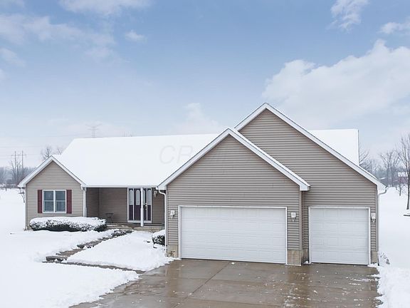 OPEN SUN., 2/24 2-4 P.M. Sprawling and open 3 BR/2 BA ranch w/2000+ sq. ft. , 2+ acre lot, 3-car garage and a FULL basement w/ 9 ft. ceilings! Also featuring a 2-tiered deck, fire pit, circular driveway, and covered front porch! The floor plan features a spacious great room w/tray ceiling and fireplace open to the dining room/foyer, a convenient 1st floor laundry room w/utility sink and a fully equipped kitchen w/abundant counter/cabinet space, under cabinet lighting, built in desk/work station, granite counters, breakfast bar and dinette area. The private owners suite has its own ''wing'' and features a whirlpool tub, W/I closet, dbl vanity, and tray ceiling! New Roof '15, newer kitchen flooring and carpet, and new Bosch dishwasher! Close to Deer Haven/Liberty Parks! See A2A Remark