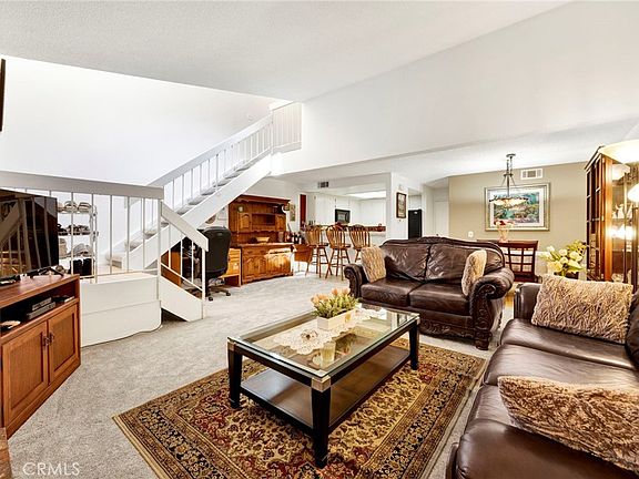 This Lovely Townhome has 2 large bedroom and 2.5 baths, and spans over 1,400 sq.ft. The comfortable living space is complimented with vaulted ceilings in the living room and primary bedroom. The primary bedroom also has a bonus atrium room with skylights above for a calm area which can be used for work at home, yoga, or you decide? Other features included are mirrored closet doors, ceiling fans, a cozy fireplace in the living room and an open floor plan. The beautiful patio area has a serene vibe surrounded with Coastal Sequoias trees and is located in the “Tranquil Meadows” Community. Conveniently located near the 118 freeway and shopping this freshly painted home with new carpet exudes modern warmth and is a must see.