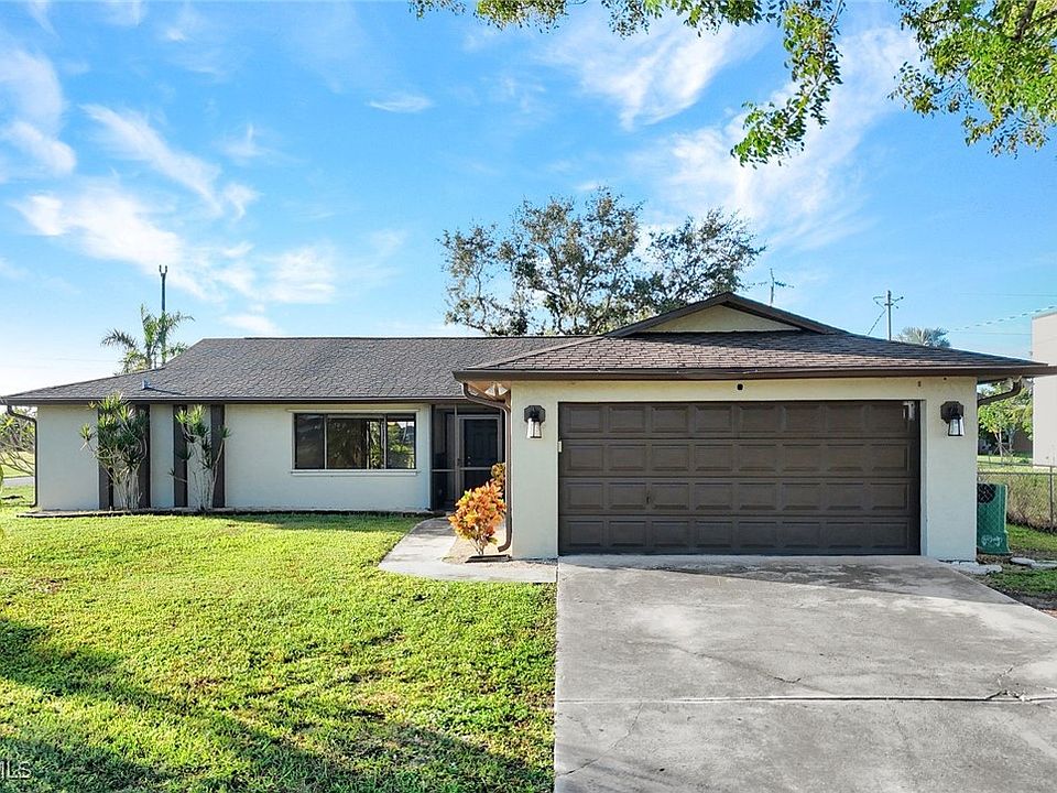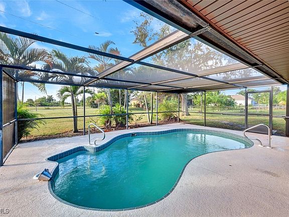 Where else can you find this much land in Cape Coral? This beautifully updated 3-bedroom, 2-bath pool home sits on a rare oversized corner lot—half an acre! The fenced-in backyard includes the adjoining lot, giving you space, privacy, and endless possibilities.