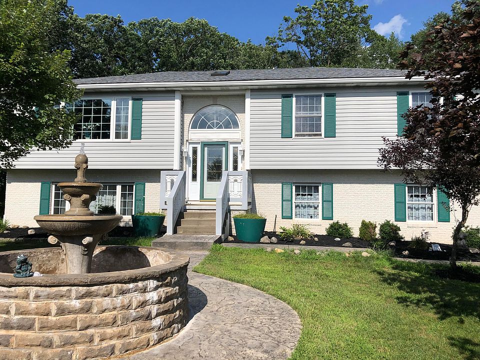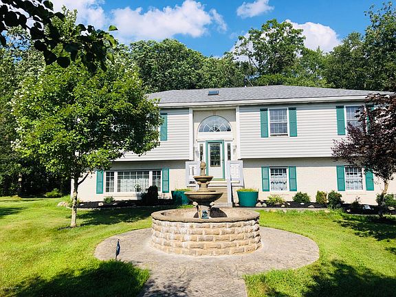 BEAUTIFUL AND SPACIOUS BI-LEVEL HOME SITUATED ON 4 ACRES WITH PRIVATE DRIVE THIS HOME OFFERS 4 BRs/3 BATHS WITH BEAUTIFUL TILED ENTRY - FORMAL LIVING ROOM & FAMILY ROOM BOTH W/ BRICK FIREPLACES - MODERN EAT-IN KITCHEN - MASTER SUITE W/ SKYLIGHTS AND WIC - LOWER LEVEL LAUNDRY AND FULL BATH - NATURAL GAS FORCED AIR AND CENTRAL A/C - NICELY LANDSCAPED FRONT WITH FOUNTAIN AND STAMPED CONCRETE WALKWAY
