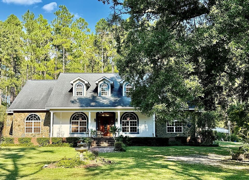 This home is so unique and welcoming. Nestled in 5 acres of woods, let's take a tour as we cross over the creek bridge and welcome ourselves home. This beautiful 3-bedroom/3.5-bath brick home is in immaculate condition. The interior features a large master suite downstairs, his and hers bathrooms, an office, library area, open living room with a stone fireplace and wood-burning stove that adjoins a chef's kitchen with island, pantry, tons of storage, top-of-the-line appliances, granite countertops, and breakfast and dining rooms. From the beautiful foyer, we go upstairs where we have 2 spacious guest rooms and a full bath. Now it's time to travel outside to a covered porch overlooking a custom-made inground pool with waterfall, lush landscaping, and a 2-car garage. You don't want to miss out on this beautiful home. Call Maggie at 912-245-8288 to set up your appointment today.