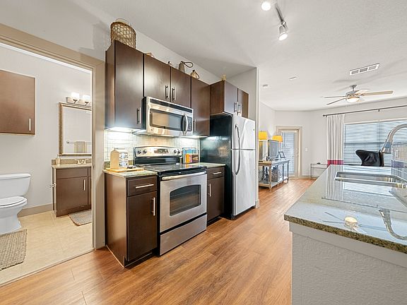 - Exterior features: All-electric Kitchen, Balcony, Community Grills, Community Social Areas, Completely New Renovated Apartment Homes, Designer Cabinets, Designer Kitchen and Bathroom Sinks, Designer Lighting and Hardware, Designer Plumbing Fixtures, Easy Access to Freeways, Kitchen Subway Tile Backsplash, LED Lit Vanity Mirrors, Nestled in a Quiet Neighborhood, New Marble-like Countertops, On-Site Maintenance, Package Receiving, Pet Park, Stainless Steel Appliances, Under Cabinet Light in Kitchen, Under New Ownership and Management