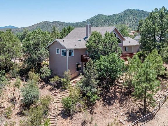 A MUST SEE''THIS BEAUTIFUL HOME IN THE PINES OFFERS MAGNIFICENT VIEWS OF THUMB BUTTE,GRANITE MOUNTAIN AND THE WOLVERINE MOUNTAINS,PINE TREES.TRANQUILITY AND CLOSE ENOUGH TO DOWNTOWN PRESCOTT FOR DINNER AND SHOPPING.HOME OFFERS GAME ROOM WITH WET BAR DOWNSTAIRS, DOWNSTAIRS HAS SEPARATE ENTRANCE AS WELL,WOOD BURNING STOVE IN LIVING ROOM AND MASTER BEDROOM IS ON THE MAIN LEVEL.